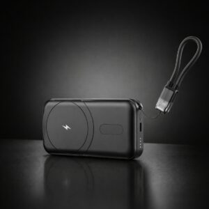 This model is designed as a compact and efficient powerbank 5000mah that meets the essential charging needs of modern consumers. With magnetic wireless charging and an integrated cable, the product simplifies the user experience by reducing dependency on additional accessories. This functionality enhances its appeal in retail environments where ease of use directly influences purchasing decisions.